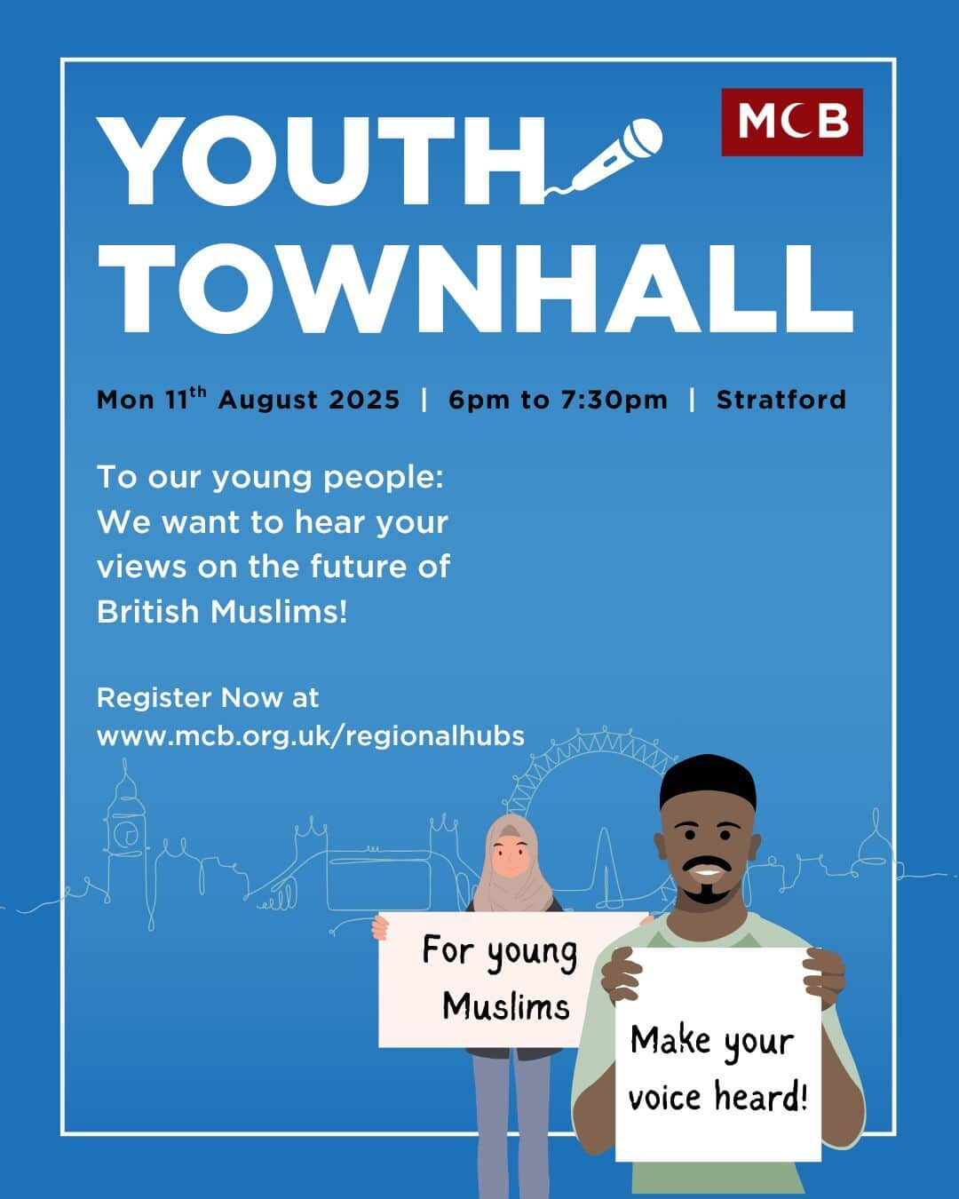 We warmly invite you to the Muslim Council of Britain’s (MCB) Youth Townhall in Stratford, London!