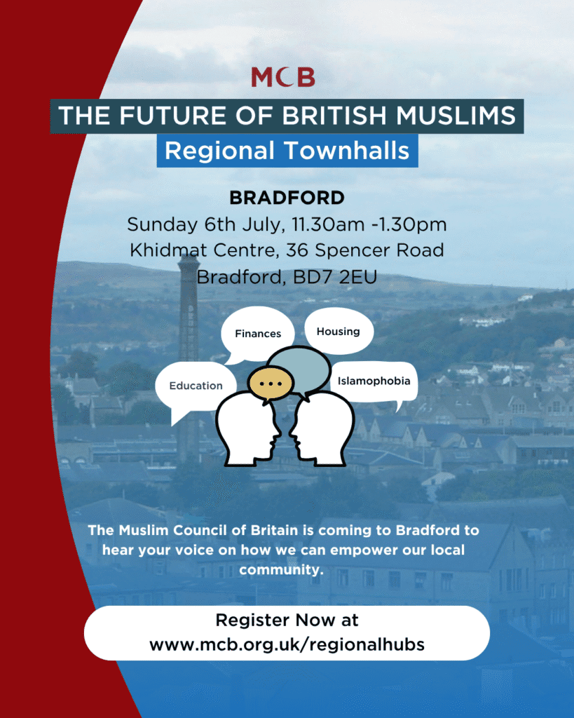 We warmly invite you to the Muslim Council of Britain’s (MCB) Town Hall in Bradford!